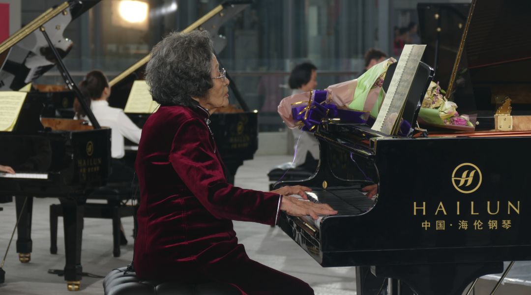 根據(jù)節(jié)目錄制的安排,劇組還特地聘請了我國老一輩鋼琴家巫漪麗老師。巫漪麗老師在眾人的攙扶下來到了海倫鋼琴旁。筆者前不久及三十年前曾采訪過巫老師,見到筆者后她親切地跟筆者打了招呼,并高興地說:我又能再次彈奏海倫鋼琴了!