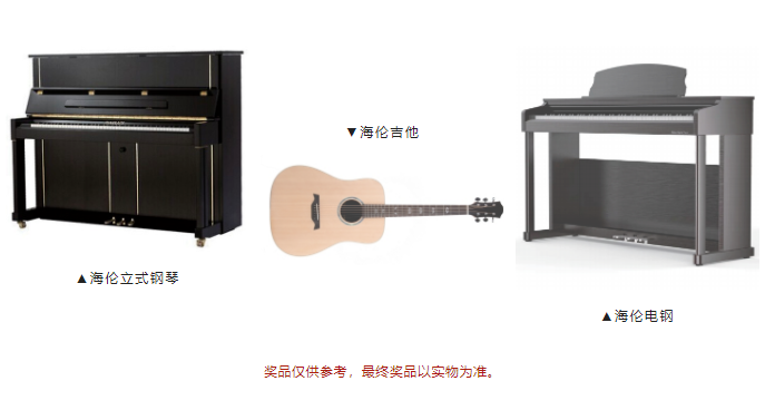 一等獎:音才獎組委會定制證書、獎杯和海倫吉他一把。