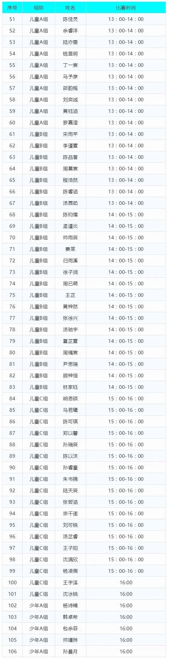 05. 參賽選手進入賽場按序參賽,陪同家長在賽場外等候。整組賽程結(jié)束后,請選手有序退場,謝絕逗留;