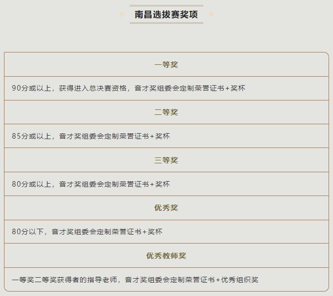 03. 以上組別安排為音才獎營口賽區(qū)信息,總決賽比賽規(guī)則及要求敬請參考音才獎官方信息;