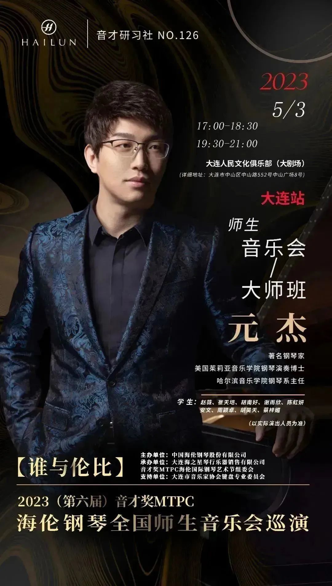 演出預(yù)告丨2023(第六屆)音才獎(jiǎng)MTPC海倫鋼琴“誰與倫比”全國音樂會(huì)巡演大連站—元杰師生音樂會(huì)·大師班即將來襲